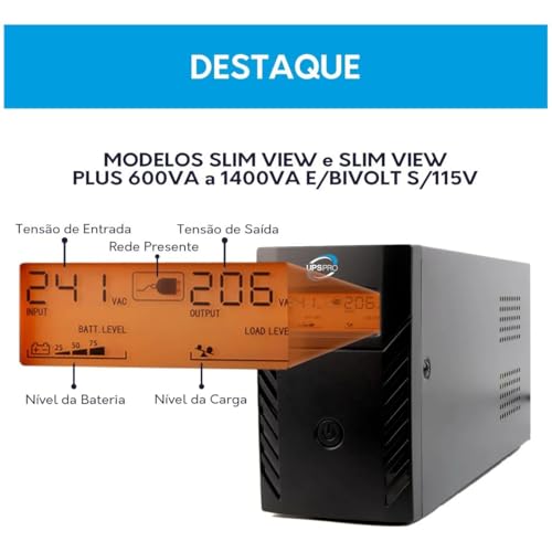 Nobreak 600VA UPS Slim View BI-Volt S/115 3 Tomadas Plus